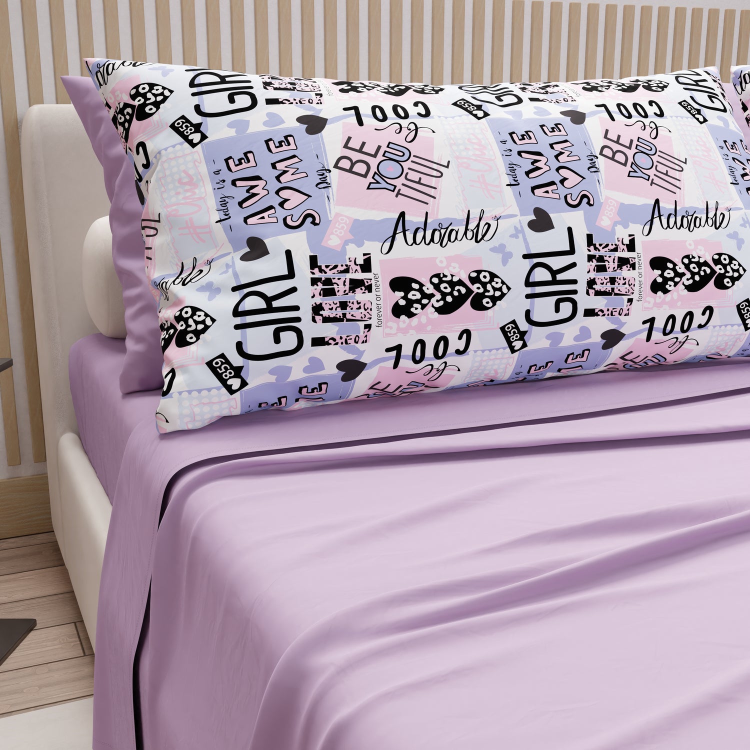 Lenzuola Tinta Unita in Cotone con Federe in Stampa Digitale