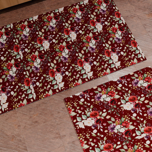 Tappeto Cucina Antiscivolo Passatoia Cucina lavabile, Floreale-07-Bordeaux