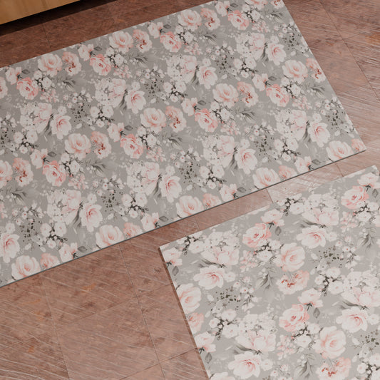 Tappeto Cucina Antiscivolo Passatoia Cucina lavabile, Floreale-17 Grigio