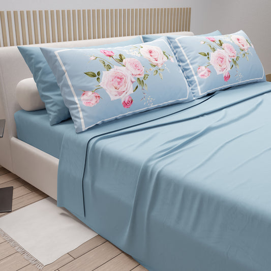 Lenzuola in Cotone, Completo Letto con Federe in Stampa Digitale Floreale 20-04