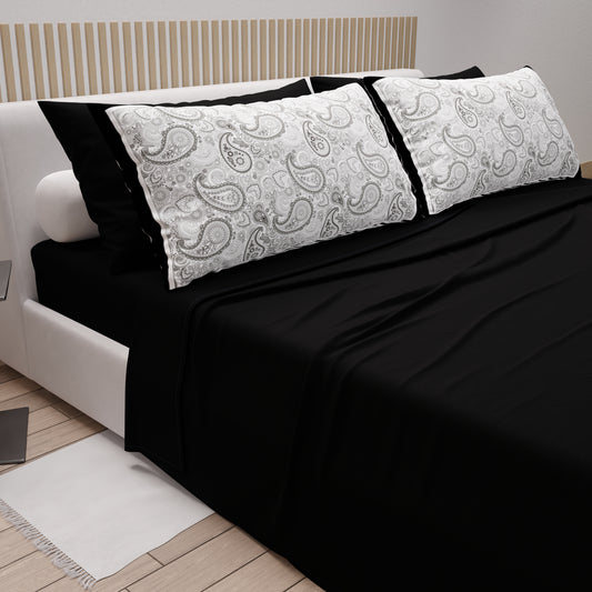 Lenzuola in Cotone, Completo Letto con Federe in Stampa Digitale Paisley Nero