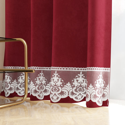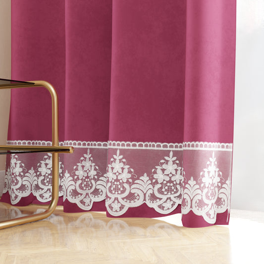 Tenda a Pannello in Velluto per Interni con Anelli e Pizzo Rebrodè, 140x280 cm, Bordeaux by Sissy