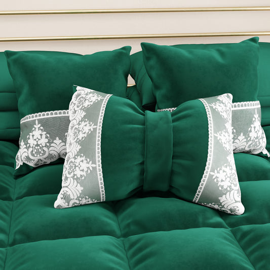Cuscini Arredo in Velluto e Balza con Pizzo Rebrodè 2pz, Cuscini divano Smeraldo By Sissy