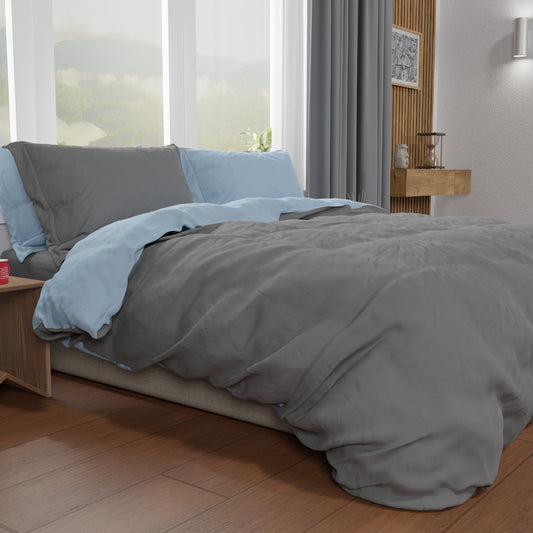 Copripiumino Matrimoniale, Sacco Copripiumino e Federe, Celeste/Grigio Scuro