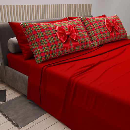 Lenzuola in Cotone, Completo Letto con Federe in Stampa Digitale Fiocco Tartan, Fantasia Scozzese