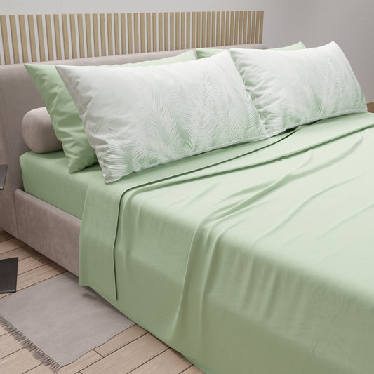 Lenzuola in Cotone, Completo Letto con Federe in Stampa Digitale Foglia Salvia