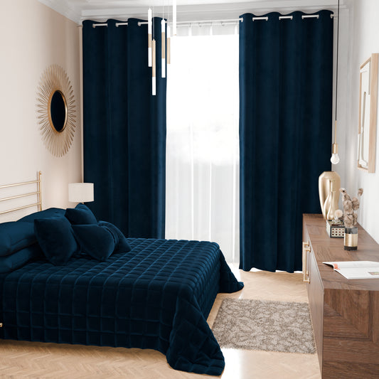 Trapuntino Copriletto Primaverile Autunnale in Velluto Double Face Blu
