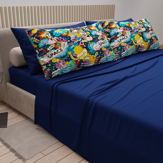 Lenzuola in Cotone, Completo Letto con Federe in Stampa Digitale Space