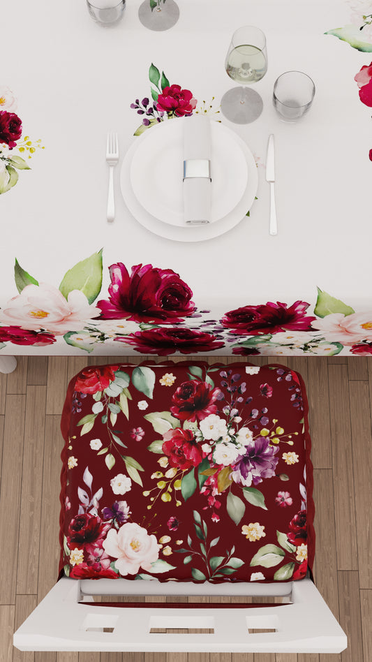 Cuscini per Sedie con Elastico Coprisedia in Stampa Digitale Floreale-07 Bordeaux