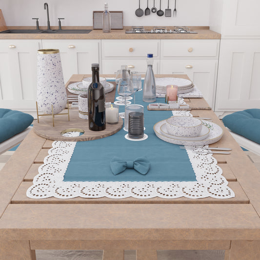 Runner da Tavolo Elegante Shabby Chic con Pizzo e Fiocchi Blu Avion