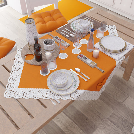 Centrotavola Cucina Elegante Shabby Chic con Pizzo e Fiocchi Arancio