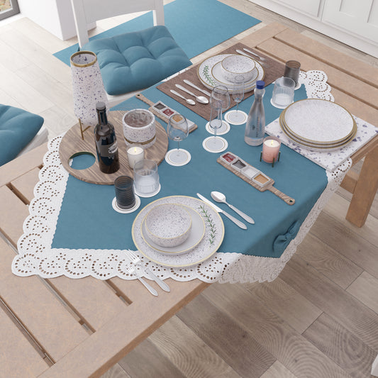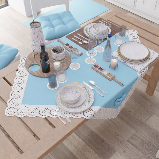 Centrotavola Cucina Elegante Shabby Chic con Pizzo e Fiocchi Celeste