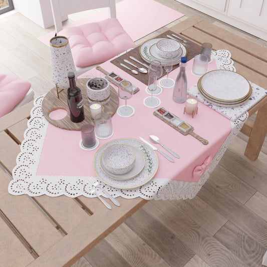 Centrotavola Cucina Elegante Shabby Chic con Pizzo e Fiocchi Rosa