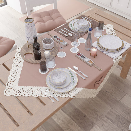 Centrotavola Cucina Elegante Shabby Chic con Pizzo e Fiocchi Cipria