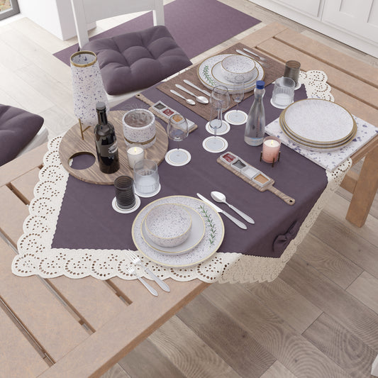 Centrotavola Cucina Elegante Shabby Chic con Pizzo e Fiocchi Lilla