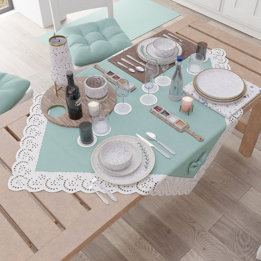 Centrotavola Cucina Elegante Shabby Chic con Pizzo e Fiocchi Verde Acqua