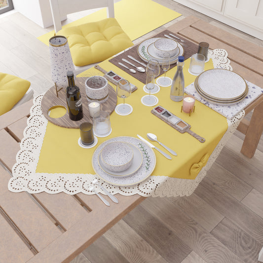 Centrotavola Cucina Elegante Shabby Chic con Pizzo e Fiocchi Giallo
