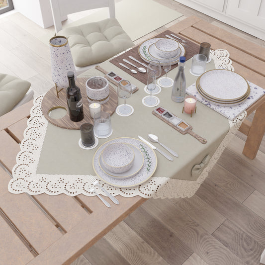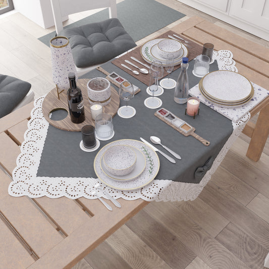 Centrotavola Cucina Elegante Shabby Chic con Pizzo e Fiocchi Grigio Chiaro