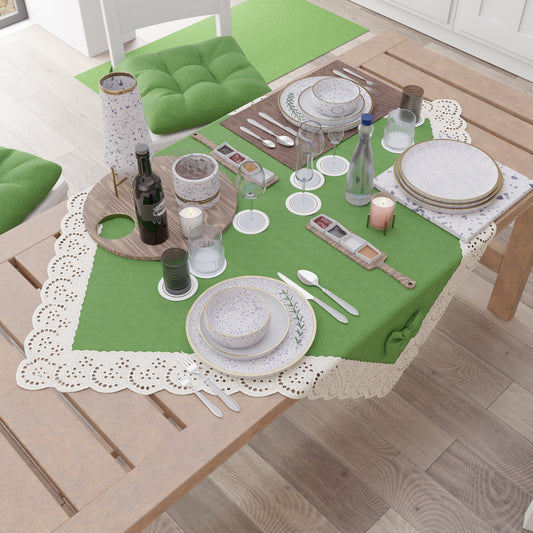 Centrotavola Cucina Elegante Shabby Chic con Pizzo e Fiocchi Verde