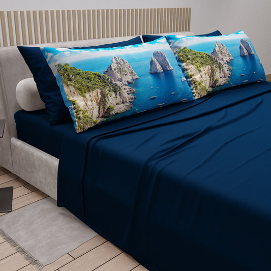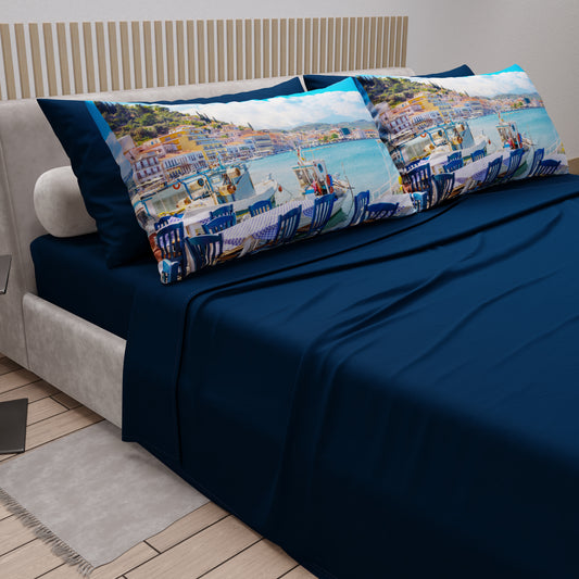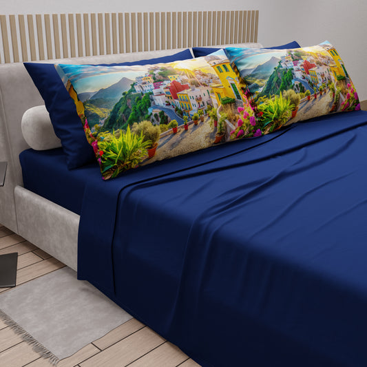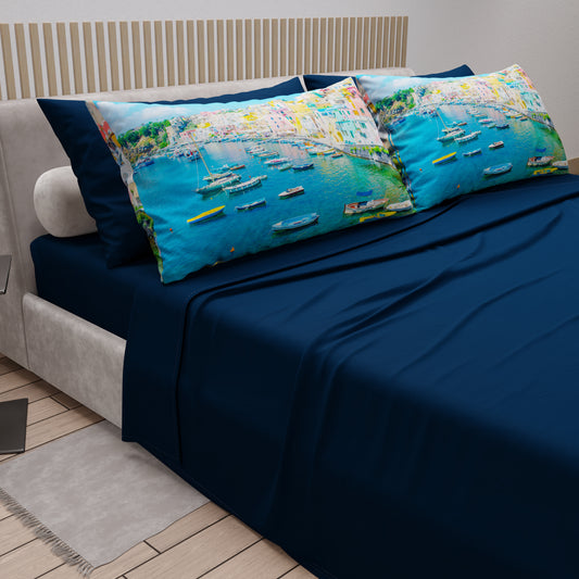 Lenzuola in Cotone, Completo Letto con Federe in Stampa Digitale, Sant'Angelo - Ischia