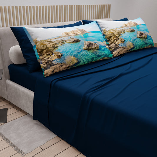 Lenzuola in Cotone, Completo Letto con Federe in Stampa Digitale, Gythio - Grecia
