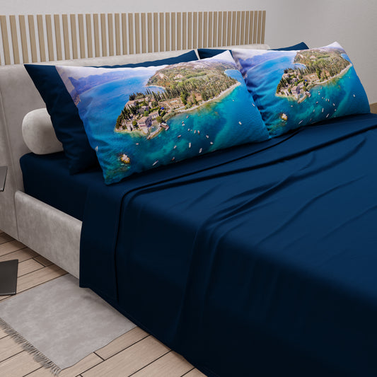 Lenzuola in Cotone, Completo Letto con Federe in Stampa Digitale, Lago di Garda