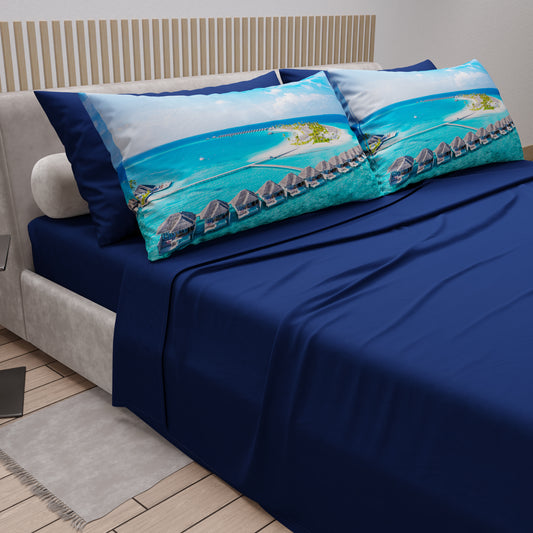 Lenzuola in Cotone, Completo Letto con Federe in Stampa Digitale, Maldive