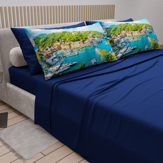Lenzuola in Cotone, Completo Letto con Federe in Stampa Digitale, Portofino