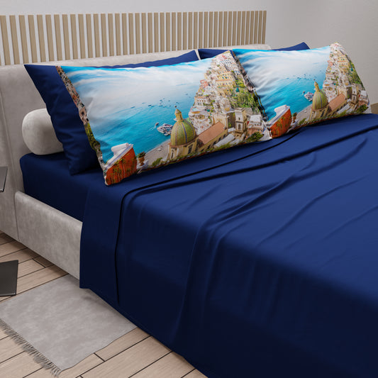Lenzuola in Cotone, Completo Letto con Federe in Stampa Digitale, Positano