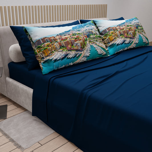 Lenzuola in Cotone, Completo Letto con Federe in Stampa Digitale, Principato di Monaco