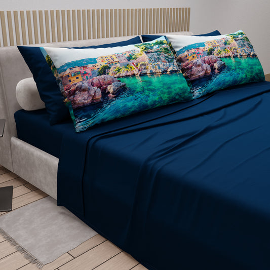 Lenzuola in Cotone, Completo Letto con Federe in Stampa Digitale, Procida