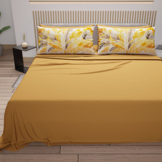 Lenzuola in Cotone, Completo Letto con Federe in Stampa Digitale Palmwater Giallo