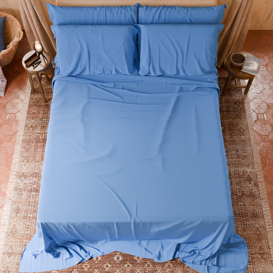 Lenzuola Matrimoniali, Singole, Una Piazza e Mezza, in Cotone, Azzurro