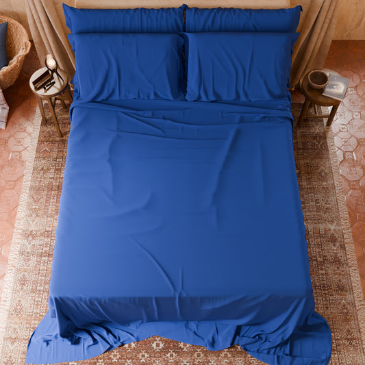 Lenzuola Matrimoniali, Singole, Una Piazza e Mezza, in Cotone, Blu Elettrico