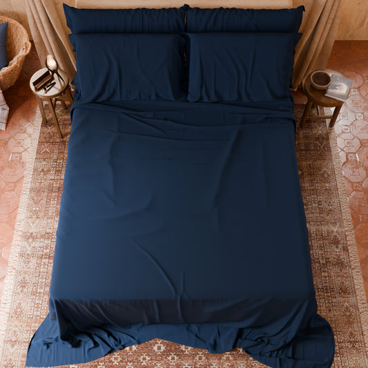 Lenzuola Matrimoniali, Singole, Una Piazza e Mezza, in Cotone, Blu Marino