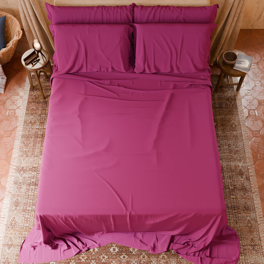 Lenzuola Matrimoniali, Singole, Una Piazza e Mezza, in Cotone, Fucsia
