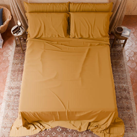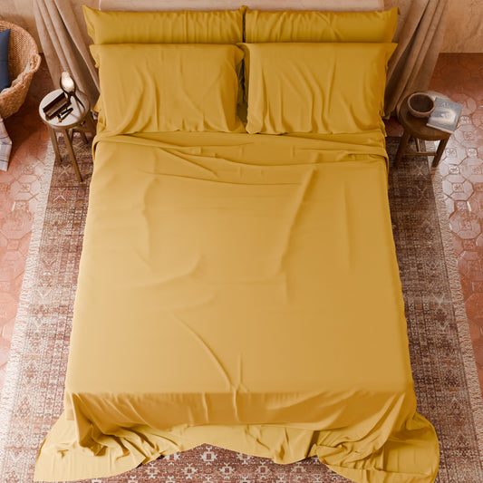 Lenzuola Matrimoniali, Singole, Una Piazza e Mezza, in Cotone, Giallo Ocra