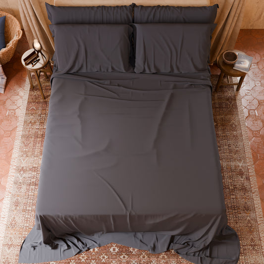Lenzuola Matrimoniali, Singole, Una Piazza e Mezza, in Cotone, Grigio Fumo