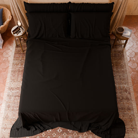 Lenzuola Matrimoniali, Singole, Una Piazza e Mezza, in Cotone, Nero
