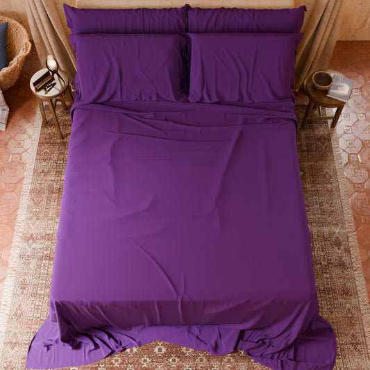 Lenzuola Matrimoniali, Singole, Una Piazza e Mezza, in Cotone, Prugna
