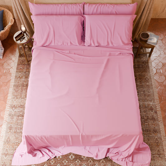 Lenzuola Matrimoniali, Singole, Una Piazza e Mezza, in Cotone, Rosa