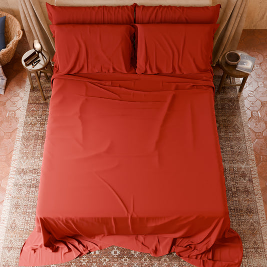 Lenzuola Matrimoniali, Singole, Una Piazza e Mezza, in Cotone, Rosso
