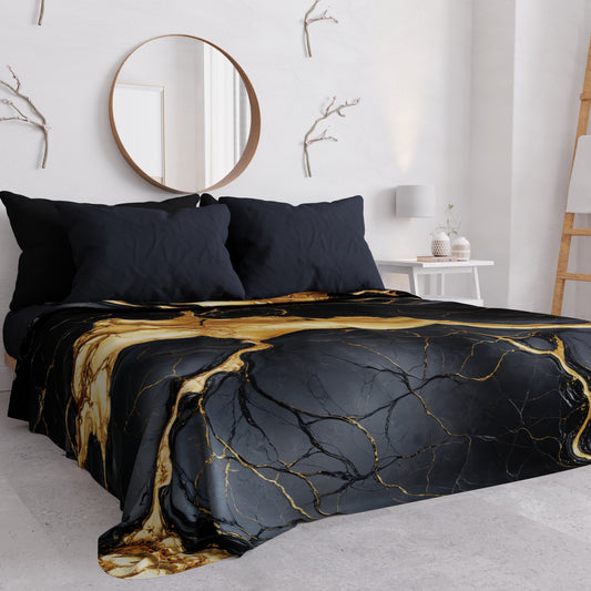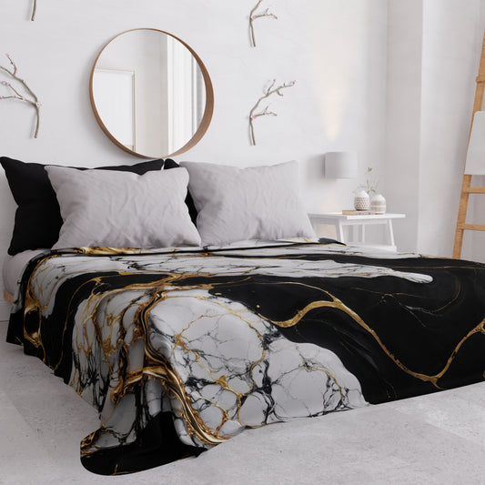 Copriletto Estivo, Coperta Leggera, Lenzuola Copriletto Effetto Marmo Nero Oro - ONYXILITE