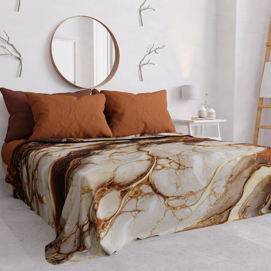 Copriletto Estivo, Coperta Leggera, Lenzuola Copriletto Effetto Marmo Marrone - MOCCACHINO