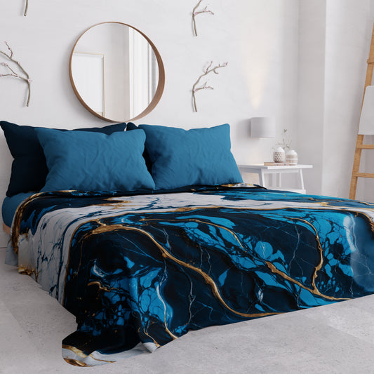 Copriletto Estivo, Coperta Leggera, Lenzuola Copriletto Effetto Marmo Blu Notte - NAVYGLO