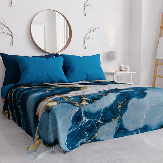 Copriletto Estivo, Coperta Leggera, Lenzuola Copriletto Effetto Marmo Blu Oceano - OCEAGLINT