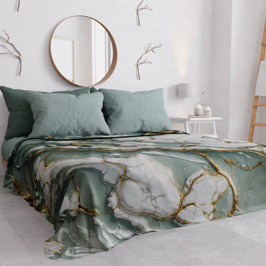 Copriletto Estivo, Coperta Leggera, Lenzuola Copriletto Effetto Marmo Salvia - SALVOR
