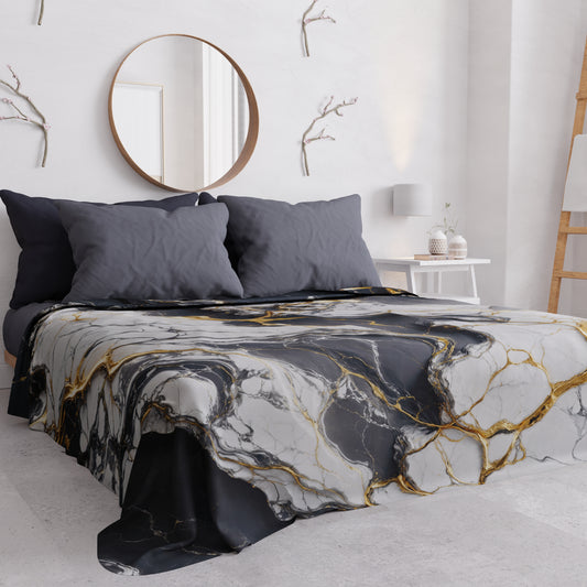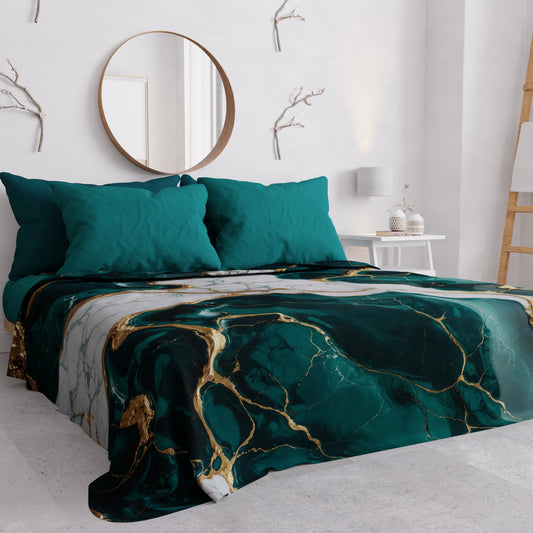 Copriletto Estivo, Coperta Leggera, Lenzuola Copriletto Effetto Marmo Ottanio - TEALGEM