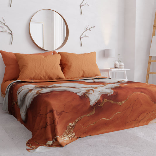Copriletto Estivo, Coperta Leggera, Lenzuola Copriletto Effetto Marmo Terracotta - TERRARUM