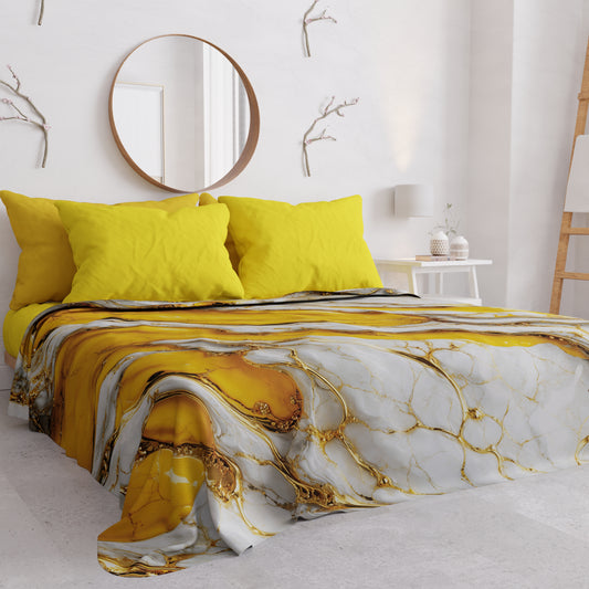 Copriletto Estivo, Coperta Leggera, Lenzuola Copriletto Effetto Marmo Giallo - YELLOOOW